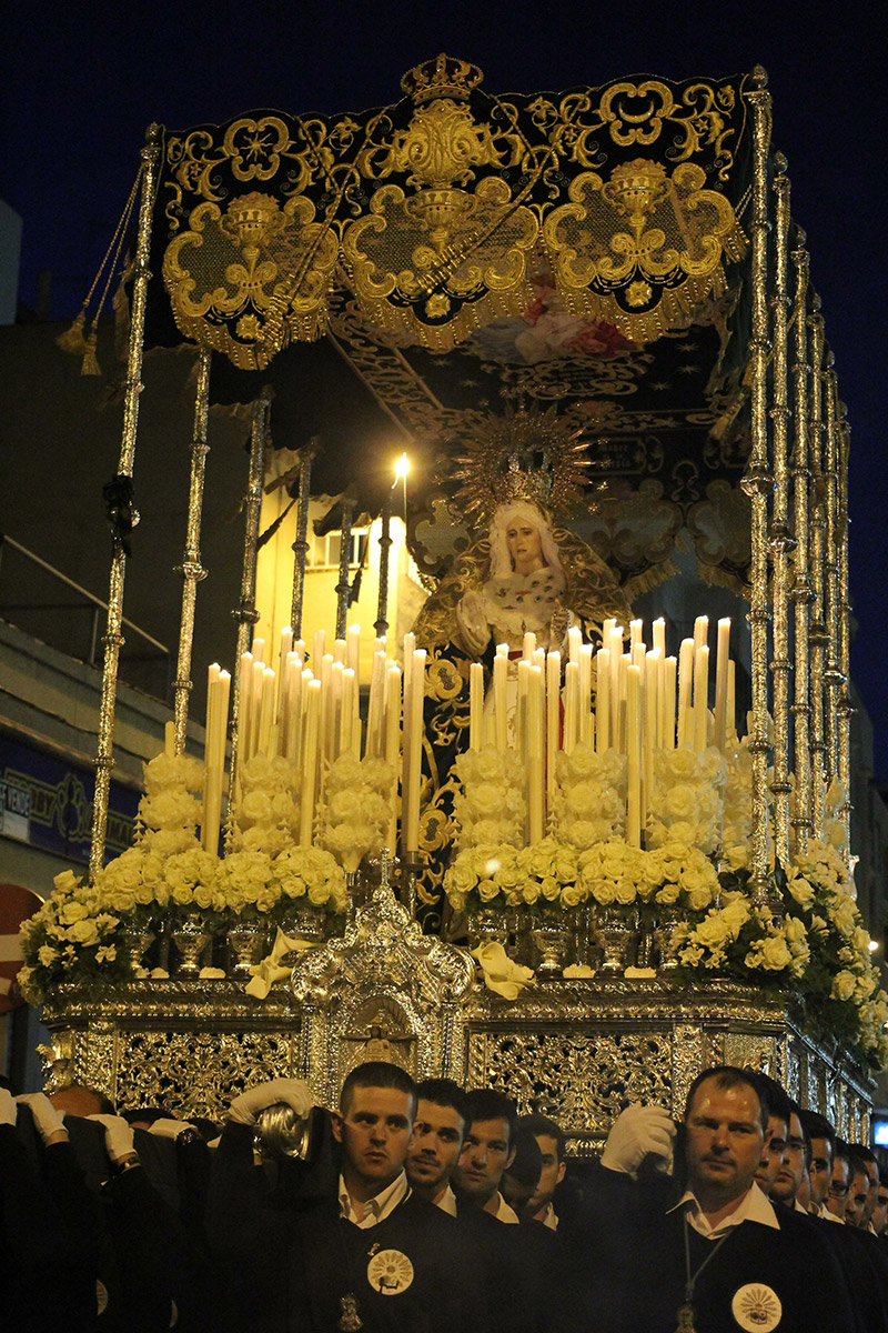 - La Esperanza estrenó su nuevo techo de palio, así como la candelería de cola, llevándose muchas de las miradas de la procesión-traslado vespertina.